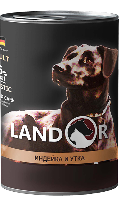Complete wet nutrition for adult dogs of all breeds turkey and duck.